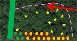 | Green circles are tentatively planned to be nut-pines and the orange circles are to be filberts. |