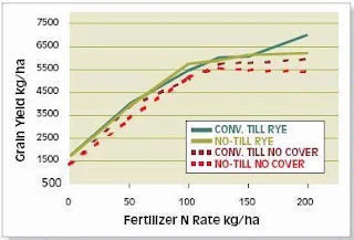Most C-3 crops (in the mid-West) show flatted response to N applications over 200 pounds per acre. By some happy accident, kg/ha is close enough to lb/acre to be almost interchangeable. The 200 lb/acre number depends on rainfall. More rain means more N can be used. In dry years N response can flat-line at 100 pounds per acre.