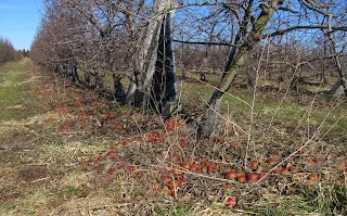 That was perplexing. There are red flowered crabapples that have purplish wood. I cannot understand how I ended up with scion wood from crabapples when I thought I was harvesting it from between two rows of Enterprise.