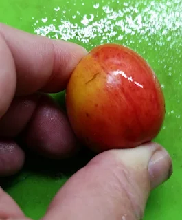 | South Dakota is a freestone. That means the stone lifts right out of the ripe, cut halves. |