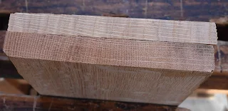 | Two pieces of quarter-sawn oak. Fast growth on top. Slow growth on the bottom. If you embiggen you will see far more porosity on the lower piece. Image from blog linked to below. |