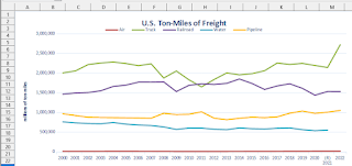 If you can believe government statistics, every man-woman-and-child in the US has the equivalent of their body-weight in freight shipped 650 miles EVERY DAY.